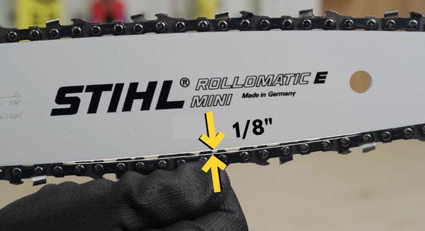 Grab your saw chain at the mid-point of the bar and give it a slight tug. If you can pull it away from the bar rails by more than 1/8th of an inch (which is about 3 mm) and then SNAPS back into place, your chain is properly tensioned.