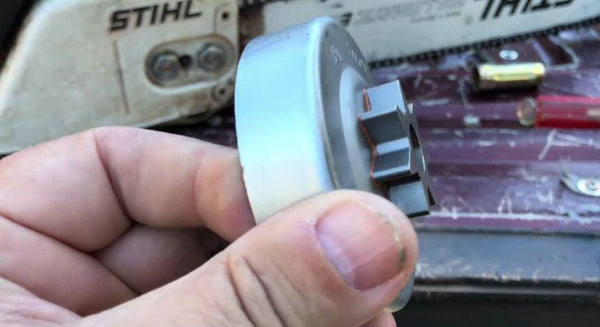 The drive sprocket (also referred to as the "chain sprocket") is the round wheel/gear-like sprocket inside your chainsaw that drives the chain around the bar.