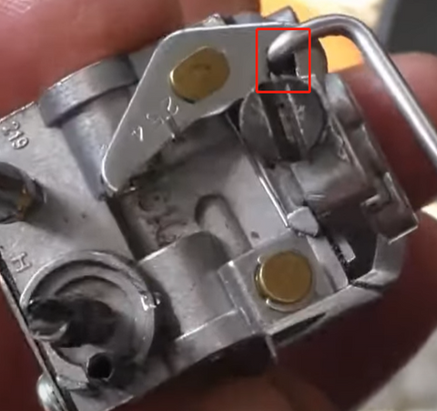 Step 8: You need to reinstall the throttle linkage. Hook it in the groove on the bottom of the carb. Then press on the throttle trigger and line it up with the linkage. (You can just pop it in with a screwdriver)