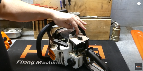 2.Remove the air filter from the chainsaw.