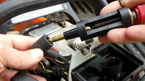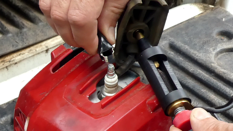 Pull off the spark plug cap and attach it to the tester. The tester's tip can be unscrewed for use on small engines and some motorcycles.