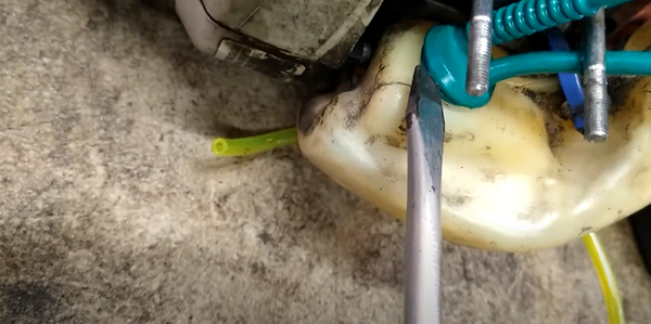 Step 6: Then drop it in the fuel tank and push it in. And you need to use a flat-head screwdriver to push the grommet in the rest of the way and just take and pry it in a little.